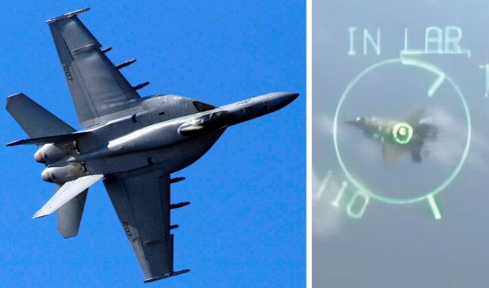 در مقابل، جنگنده F-۱۸E سوپر هورنت نیروی دریایی آمریکا قرار داشت؛ هواپیمایی قدیمی‌تر اما همچنان قابل‌اعتماد که نشان داد در نبردهای نزدیک هنوز حرف‌های زیادی برای گفتن دارد.
